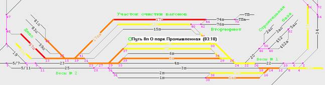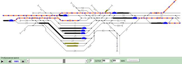 Рис. 10. Передвижение поездов и маневровых составов в динамике