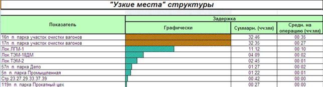 Рис. 9. Таблица «узких мест» станции, вызывающих наибольшие задержки
